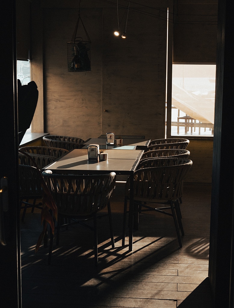 Il locale di circa 500mq, diviso in 3 aree principali che sinergicamente mutano durante la giornata, offre in ogni occasione un un ambiente accogliente e cordiale con vista sul mare, dalle prime luci del mattino fino a tarda notte.